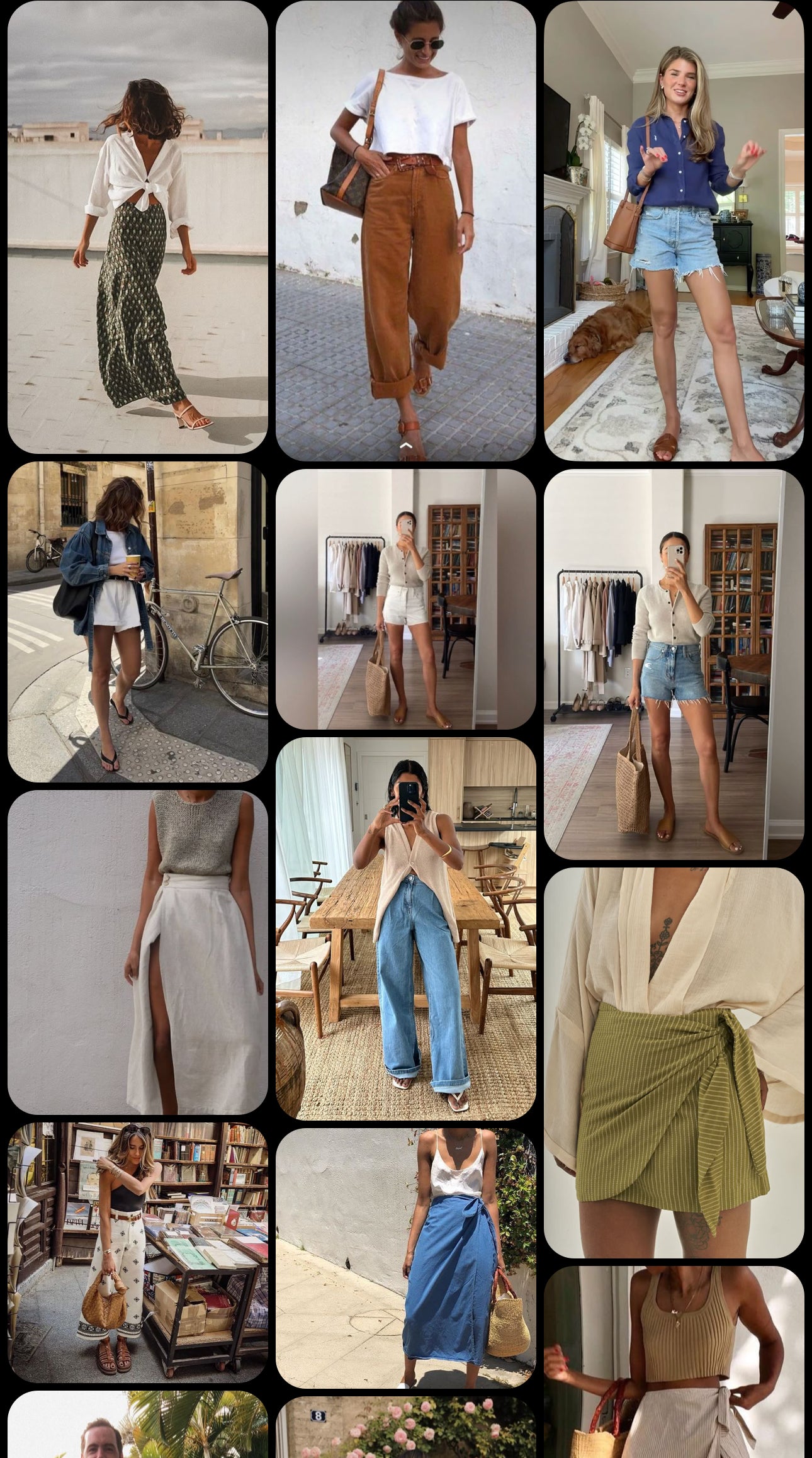 Key pieces in this aesthetic: denim or khaki or linen shorts, vests, breezy button downs, tank tops, maxi skirts, midi skirts, maxi and midi dresses, mini dresses, mini skirts, blouses, short sleeve tops, lightweight sweaters and cardigans, and more.